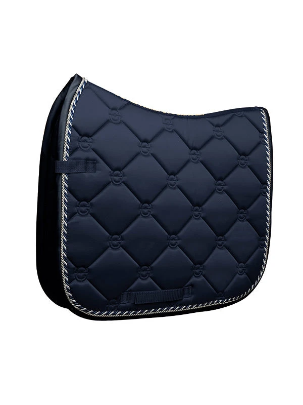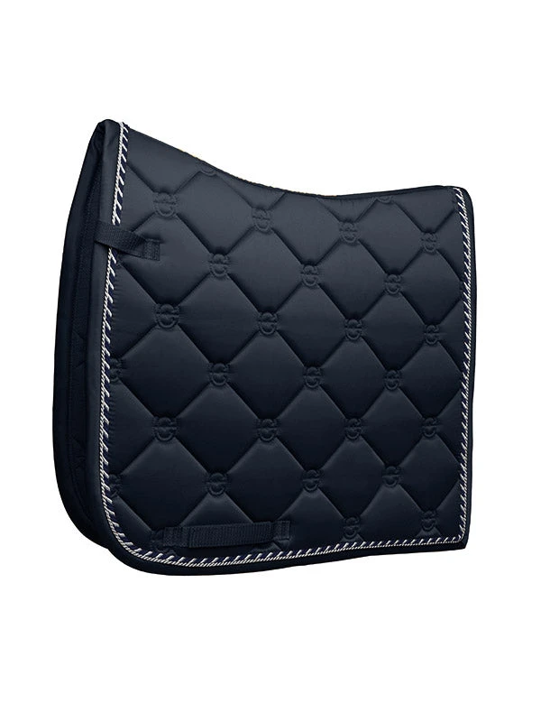 Our luxury saddle pad in shiny navy is perfect for a day of competition or training! The saddle pad has ‘super quick dry’ inner material and shiny dirt repellent outer material with beautiful details in silver.