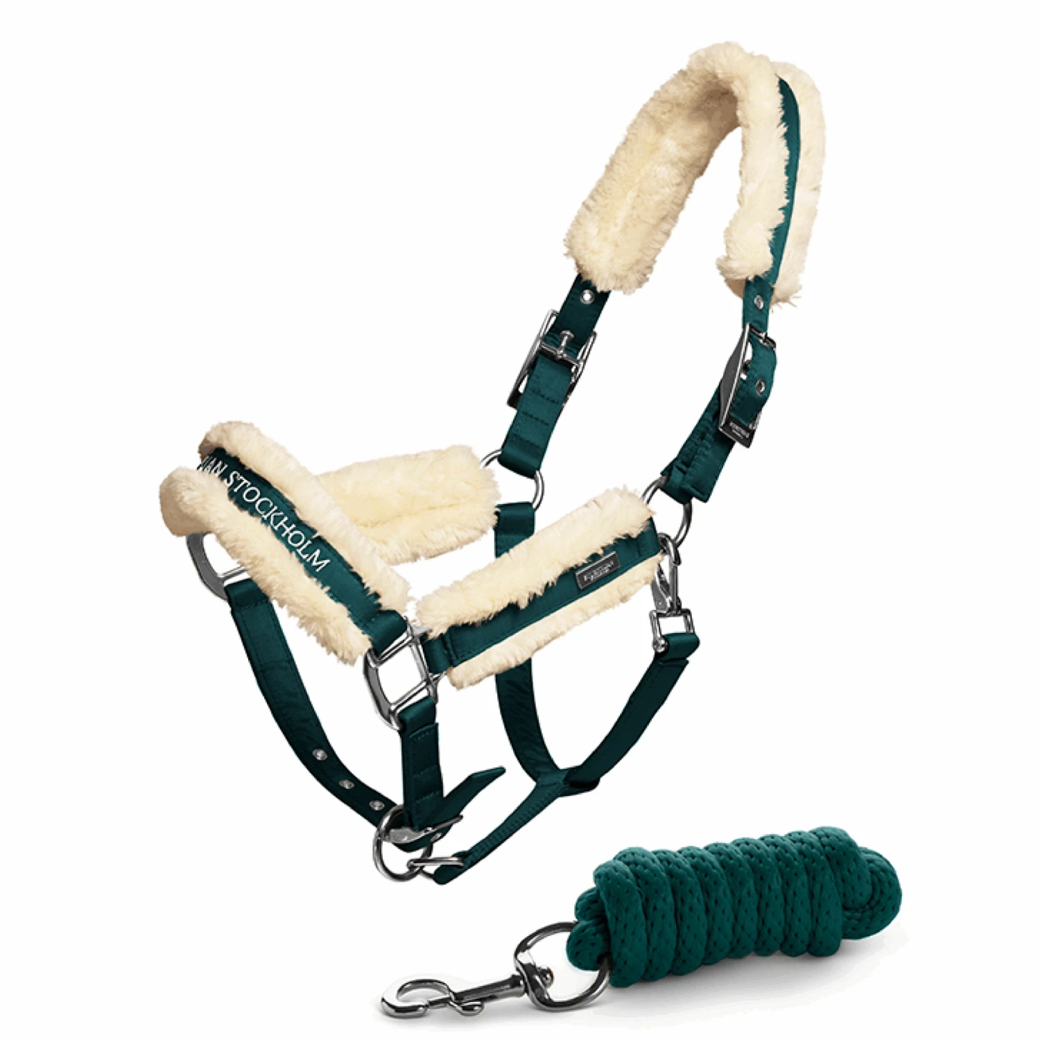 Keep it cozy with this exclusive halter in emerald green and teddy fur combined with chrome details. Embellished ES logo on the noseband. Style with other pieces from the same collection for a complete look.Â